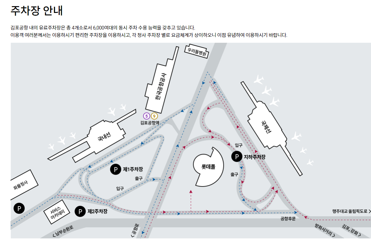 공항 외부지역의 사설주차장과 혼돈의 우려가 있으니 이용전 반드시 공식업체 하늘색 복장의 (주)엘림 비엠에스를 확인하고 이용해야 합니다 이외 호객행위로 인한 공항 밖 주차장에 주차시키는 사설 주차로 인한 피해 또는 손실은 김포공항에서 책임지지 않습니다